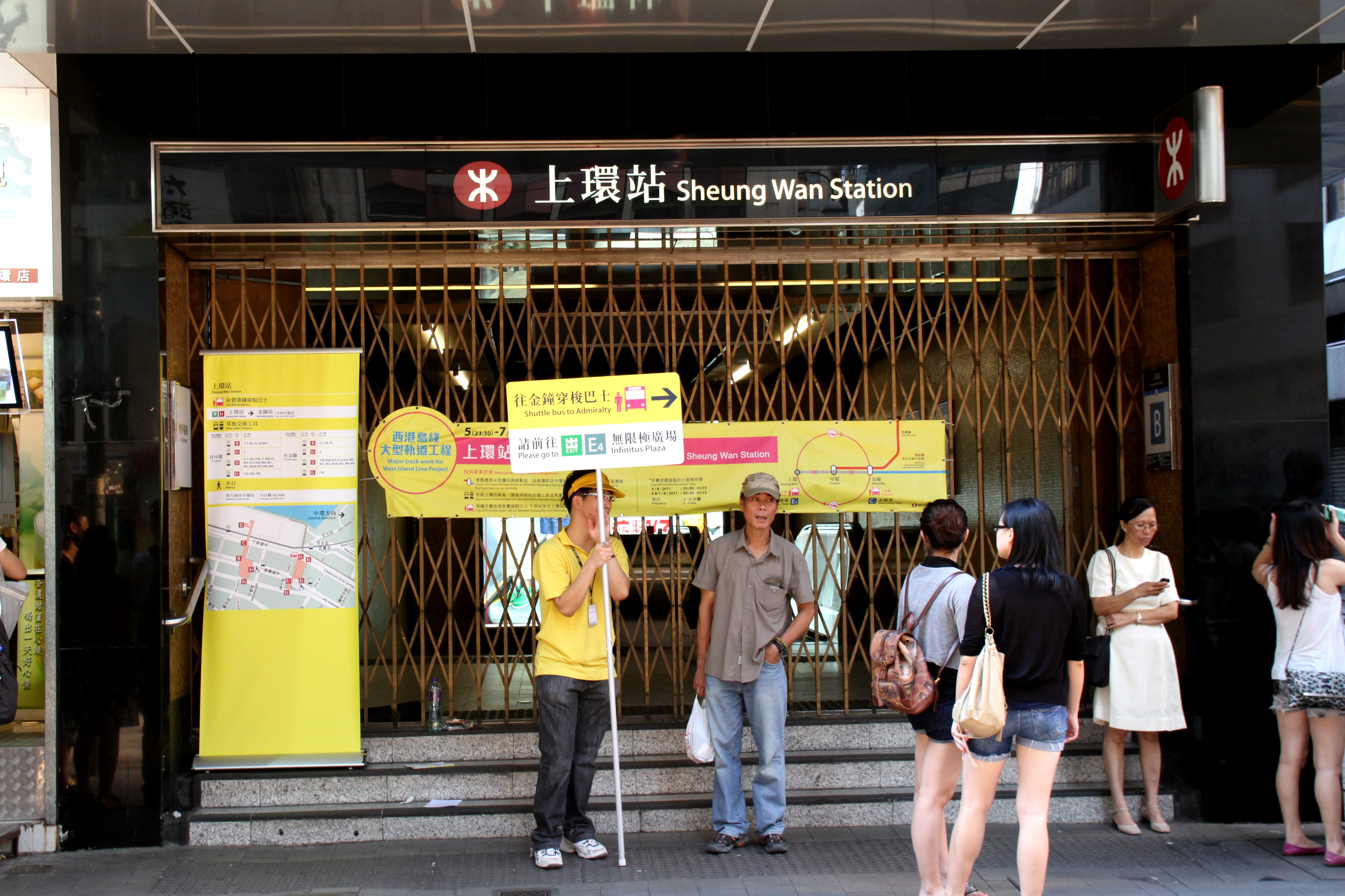 因應與西港島綫相關的軌道改建工程,上環站曾於2011年8月停運54小時,圖為停運期間B出口封閉的情況