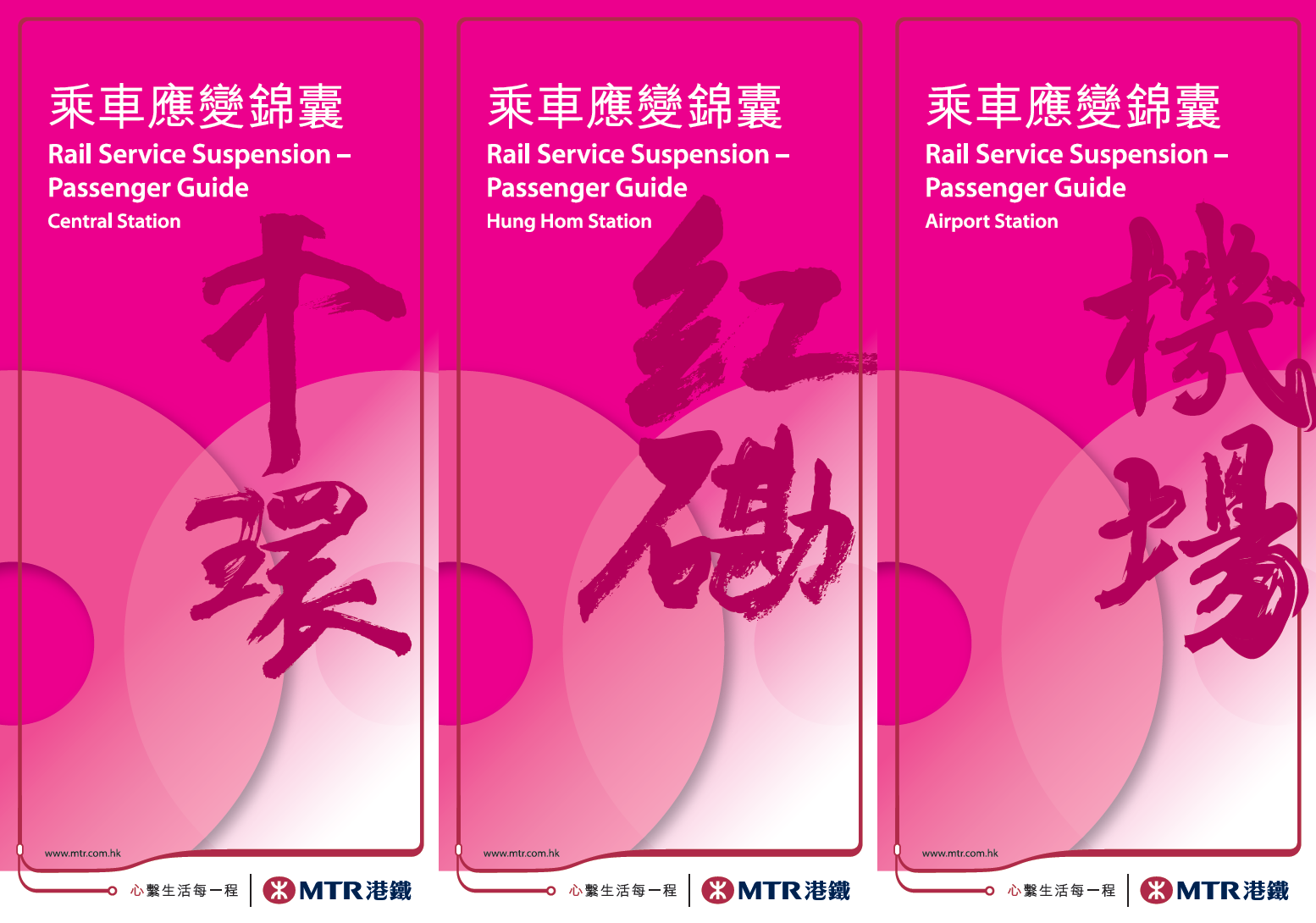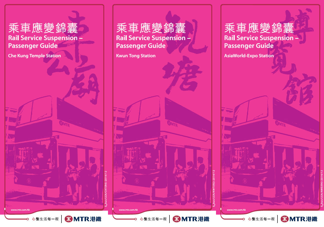 值得注意是:港鐵亦有為機場站與博覽館站印刷乘車應變錦囊,而該兩站的中文名稱亦是以書法形式顯示。機場站與博覽館站的車站指南於2017年5月方獲首次印刷。