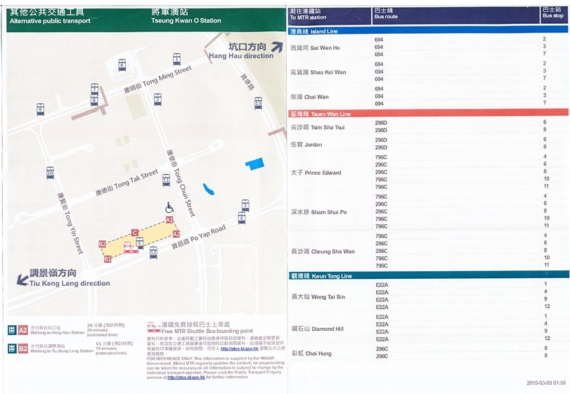 2015年2月後,港鐵棄用原有粉紅色封面的小冊子,改為印刷附地圖及附近巴士路線的A4彩色紙張。
