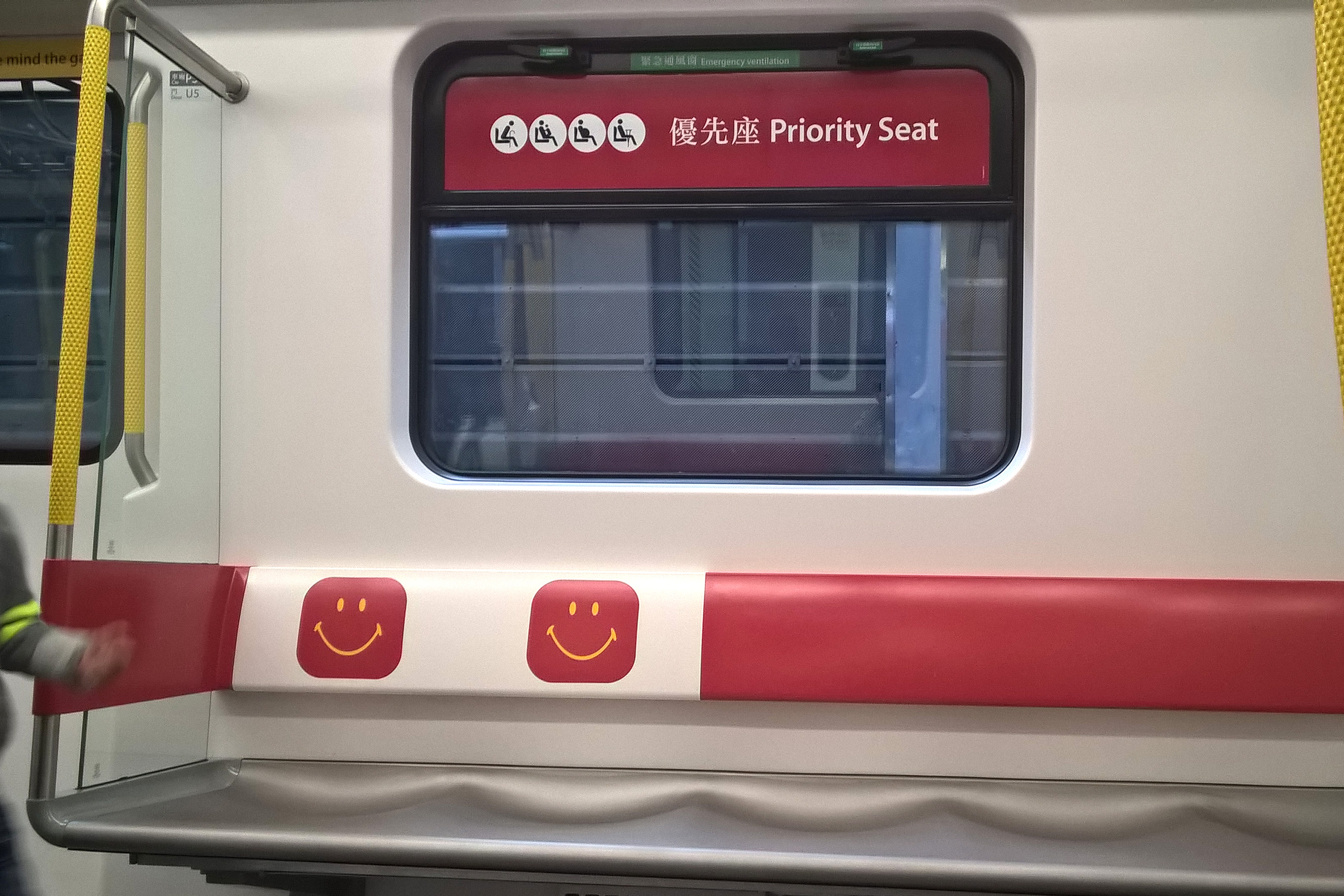 三年後,「Smiley®World」授權到期,港鐵把座位上方的標貼轉為現時標示四種有需要乘客的優先座圖案,同時推出首列每卡車廂設4個優先座的列車[6],並加入以下提示廣播: