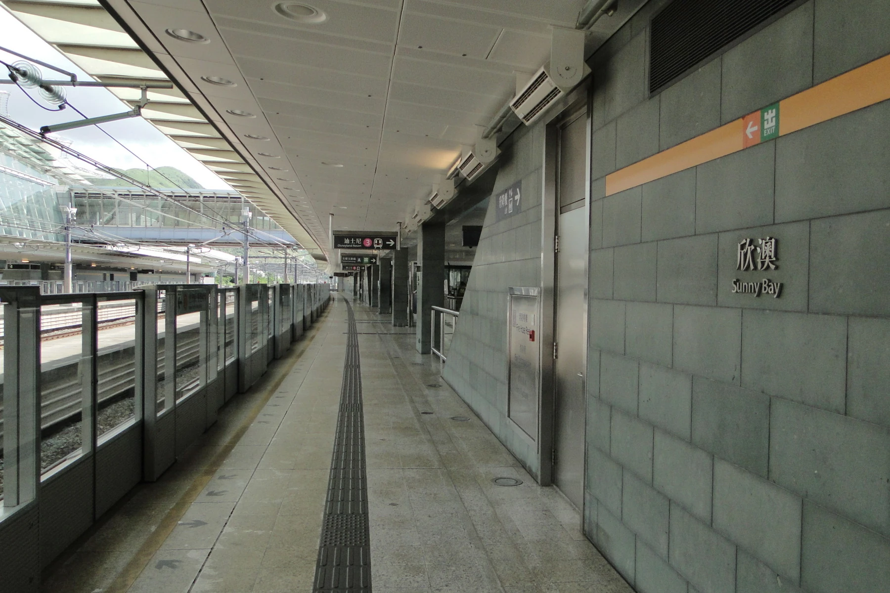 | ←1號月台:東涌綫東涌方向(左邊車門) 自助設施、洗手間 3號月台:迪士尼綫迪士尼方向(右→左邊車門)→ |