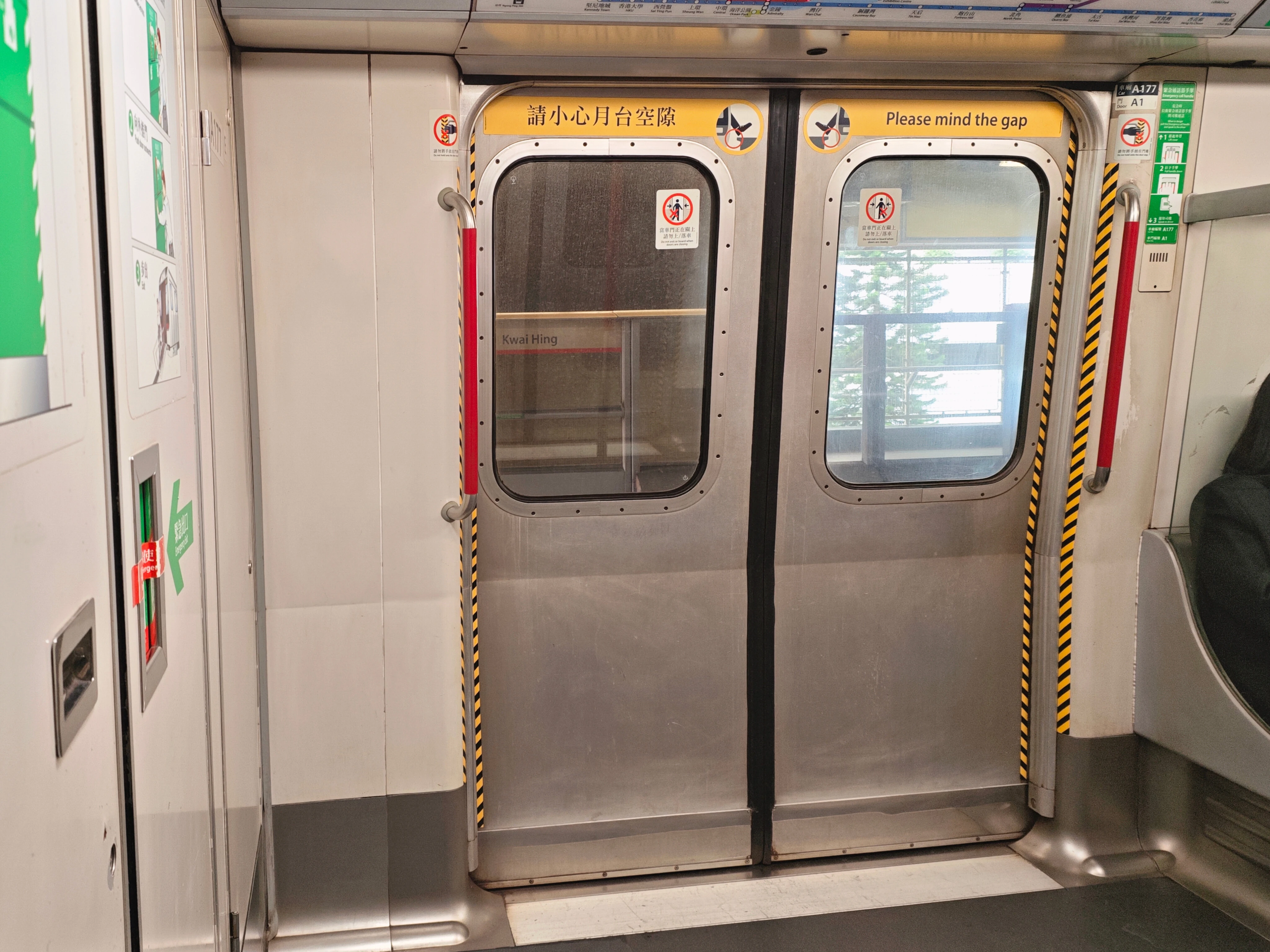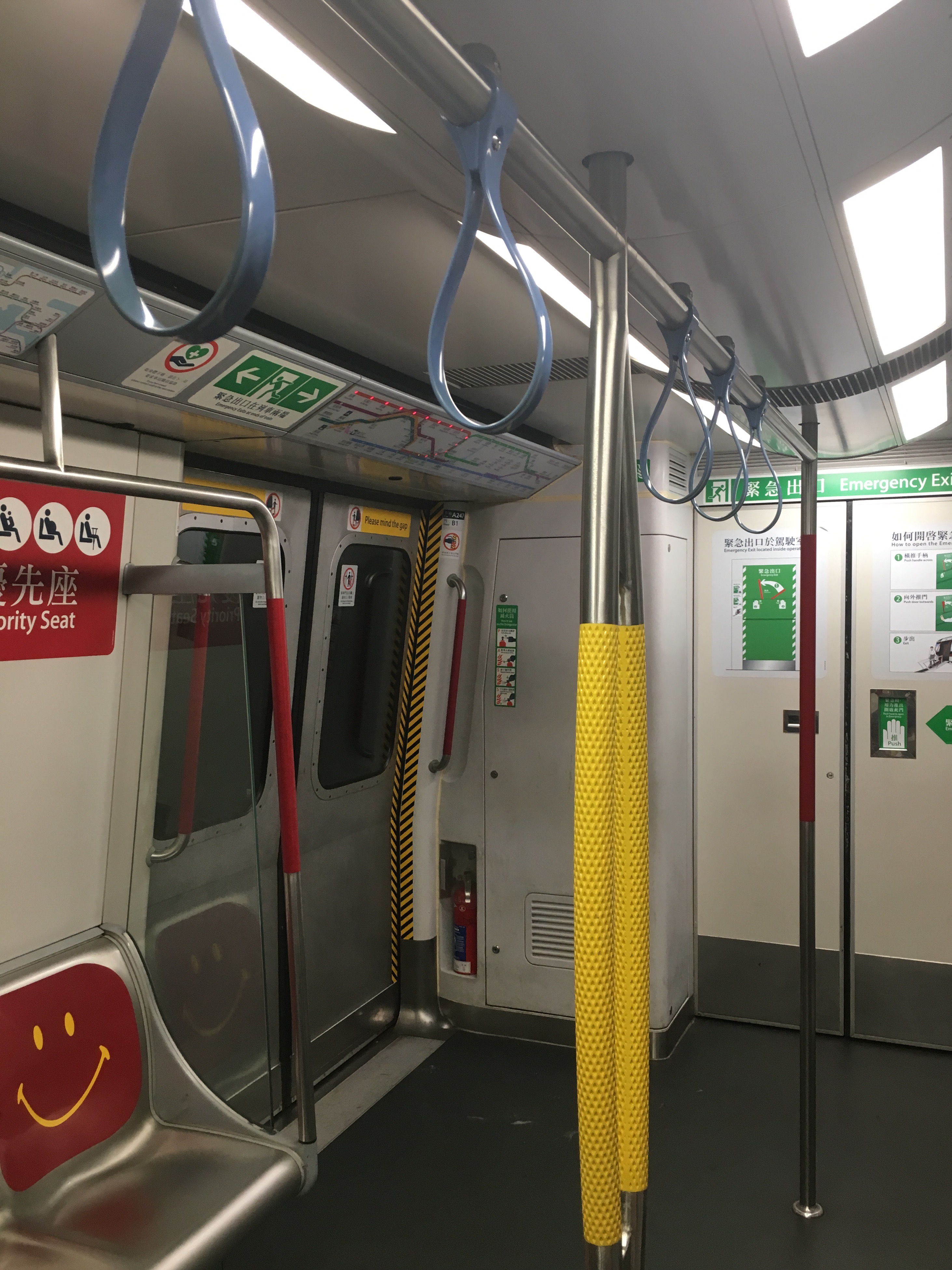 近年安裝的軟膠吊環、環型扶手桿及新信號設備櫃(攝於A247/A232)